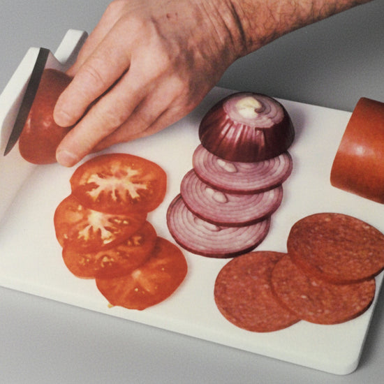 Eliminate the Problem of Slicing Hard-to-Hold Meats and Vegetables.